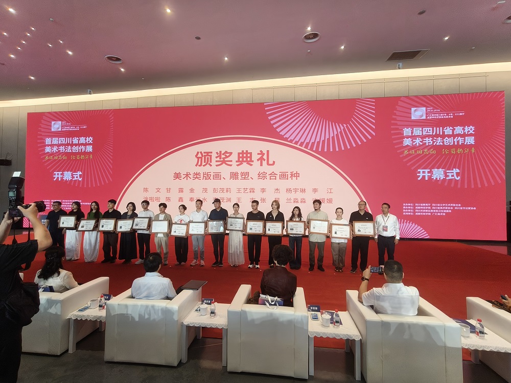 据悉,本次创作展自启动征集以来,共收到来自全省高校教师、大学生以及中小学教师投稿的美术书法作品近3000件。经过多轮评审,最终评选出美术类获奖作品296件,其中一等奖50件、二等奖50件、三等奖63件、优秀奖133件;书法类获奖作品184件,其中一等奖29件、二等奖30件、三等奖40件、优秀奖85件。获奖作品兼具思想性与艺术性,既有传承又有创新,展现出四川师生对强国建设的深切感悟、壮志豪情,以及对蜀地文化深厚底蕴与时代魅力的深刻理解和艺术表达。